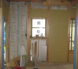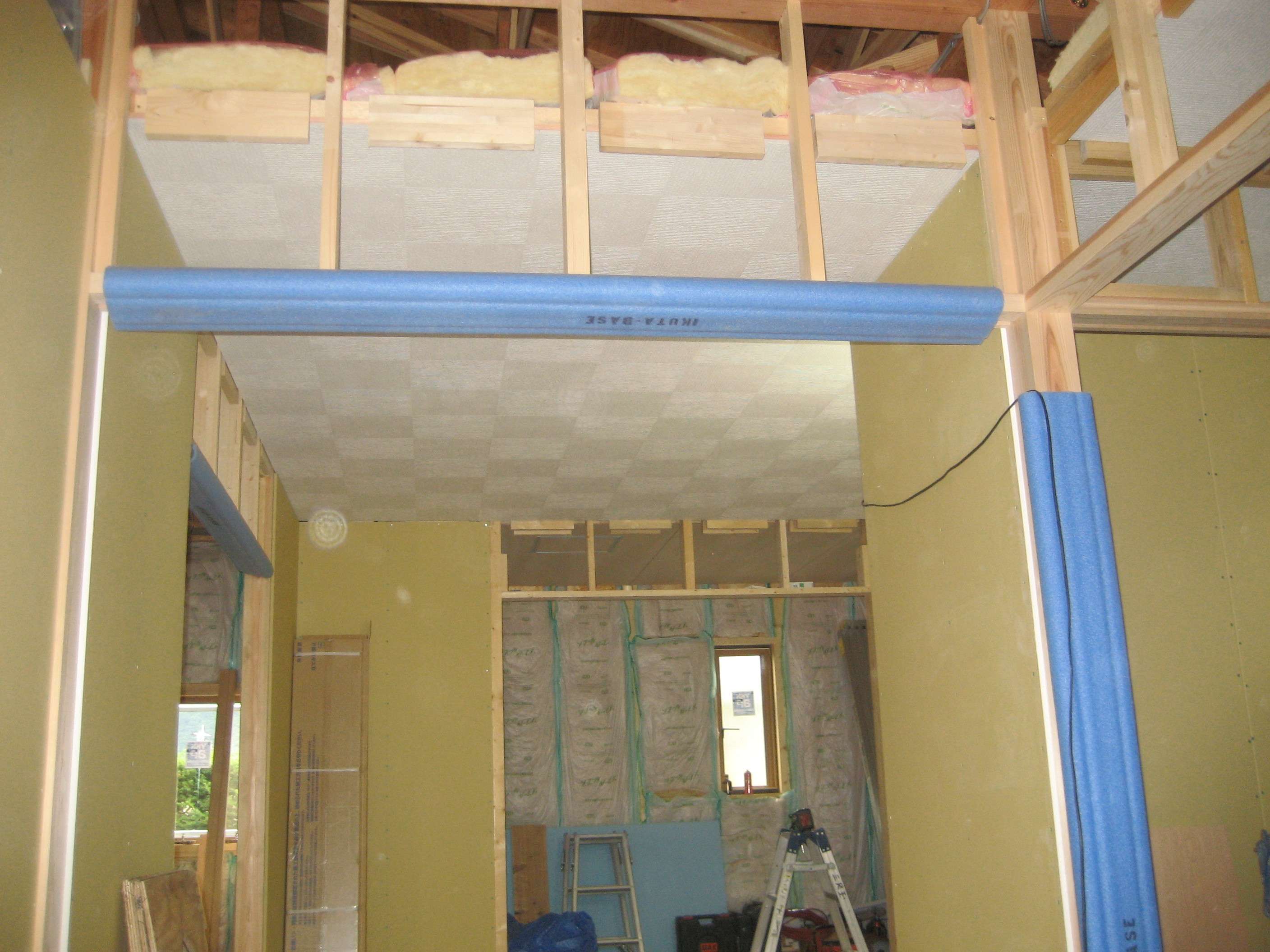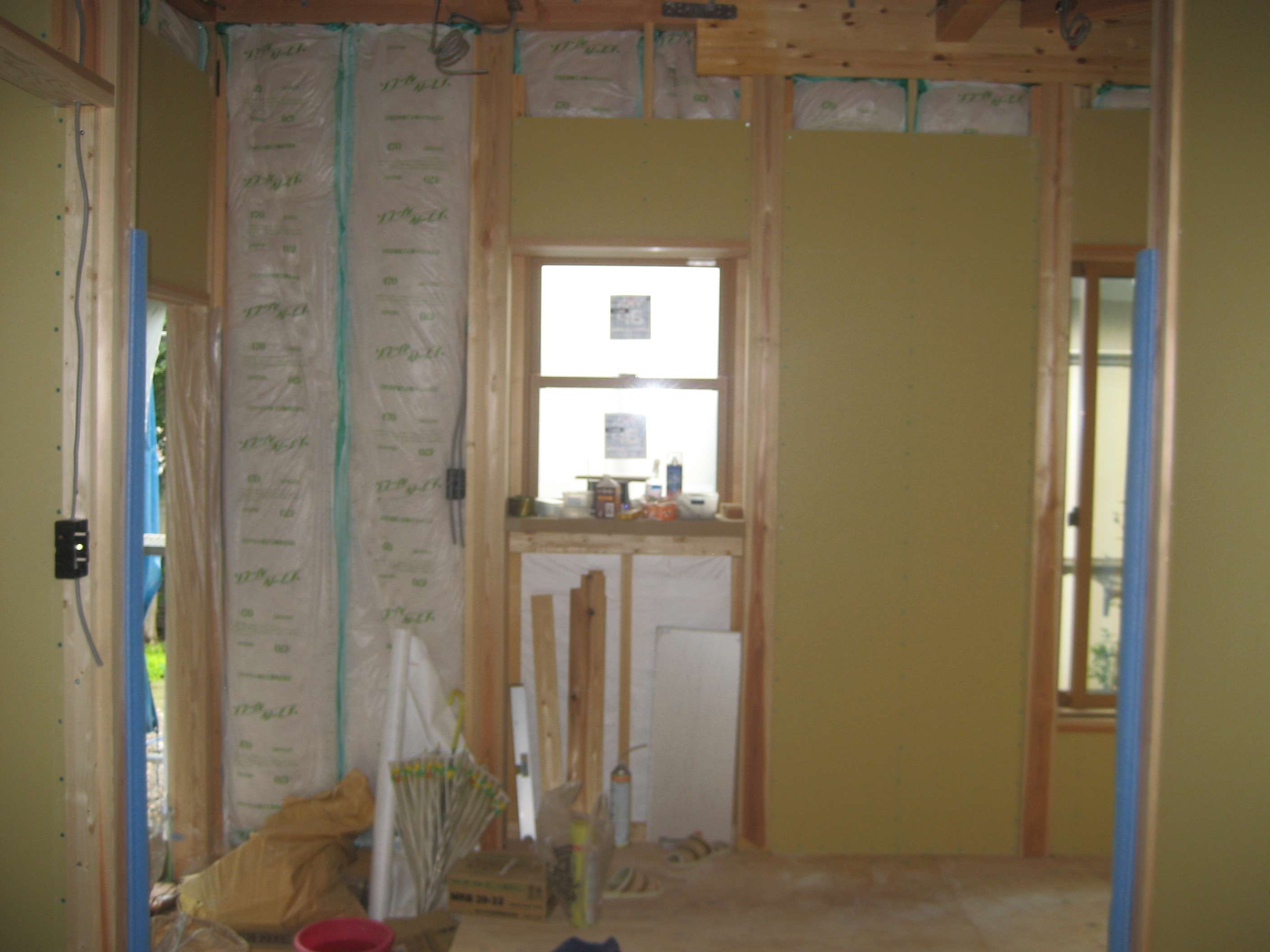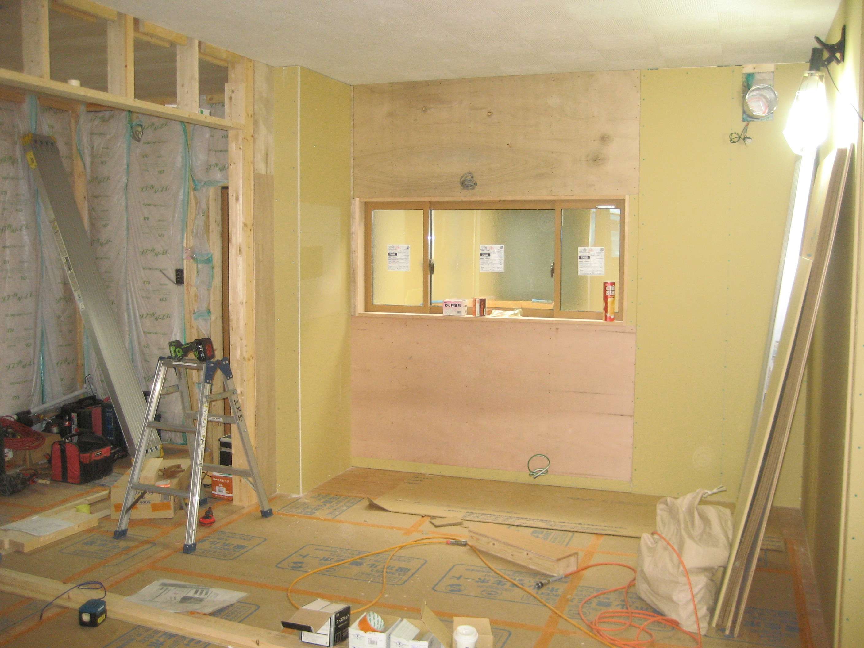 台所の天井、壁の下地ボードが張られて来ました。